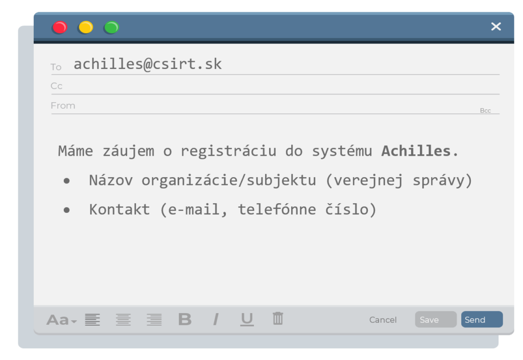 V rámci registrácie nás treba kontaktovať na e-mailovej adrese achilles@csirt.sk s nasledujúcim textom: